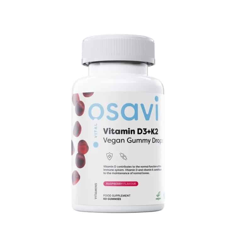 D3-vitamin és K2-vitamin tartalmú vegán málna ízű gumicukor – 60 darab gumicukor