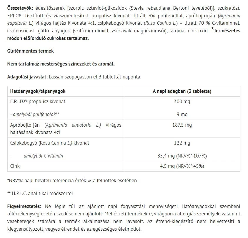 Natur Tanya – Natur Tanya S. EPID Propolisz Tabletta Alpesi Gyógynövényekkel, Cinkkel, C-vitaminnal (20 db)