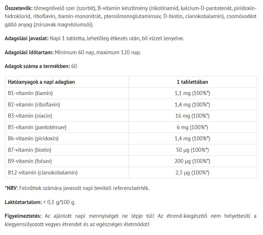 A Natur Tanya Vegan Vitamin B Complex tabletta többféle B-vitamint tartalmaz, melyek mind növényi forrásból származnak. A pontos összetétel gondosan válogatott, hogy illeszkedjen a vegán életmódhoz.
