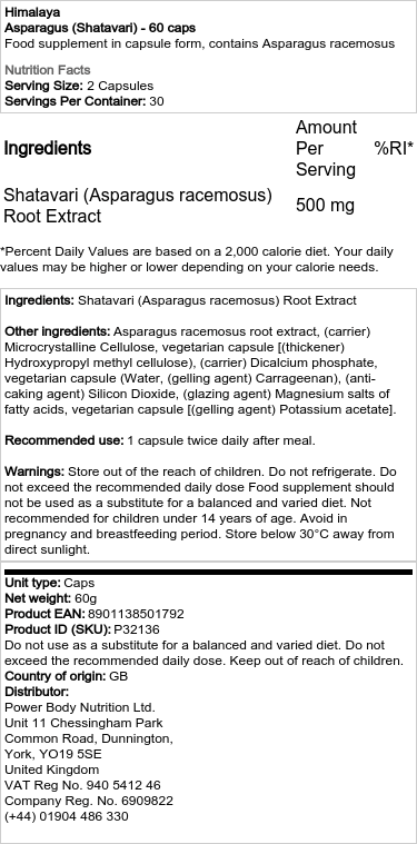 Az Asparagus Himalaya a Shatavari (Asparagus racemosus) gyökérkivonatából készült egyetlen gyógynövény-készítmény. A gyógynövényt régóta használják a nők támogatására a menstruáció végén a keringés, valamint az egészséges idegrendszeri és hormonális működés elősegítésével.