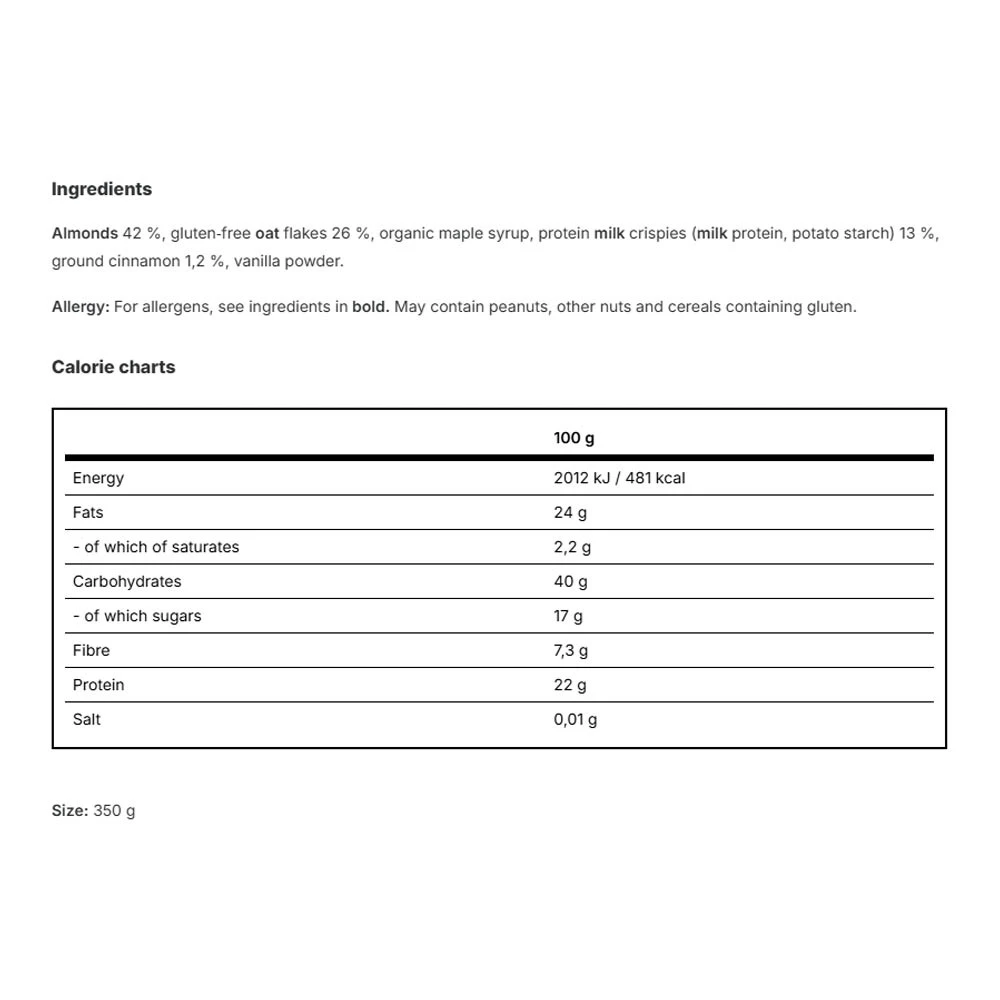 A granola gazdag összetételű, beleértve a kiváló minőségű gabonaféléket, természetes fahéjat és növényi fehérje forrásokat. Ezek az összetevők gondosan vannak kiválasztva annak érdekében, hogy egyedülálló ízvilágot biztosítsanak minden falatban.