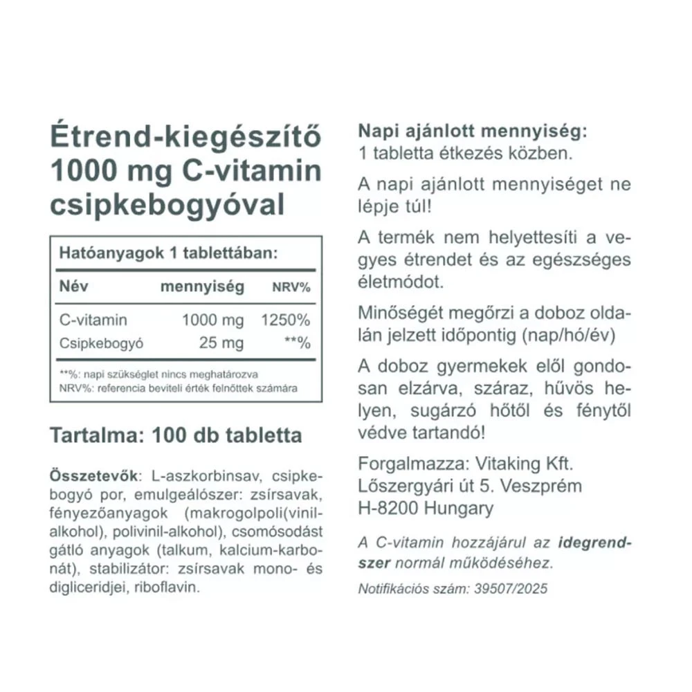 Vitaking C-1000 mg with Rosehip 25mg (100 Tabletta)