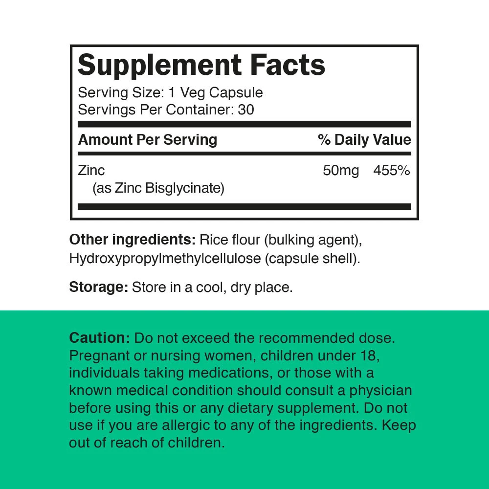 Vitamin360 Zinc Bisglycinate 50 mg (30 Veg Capsules)